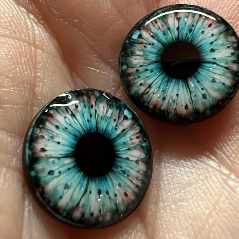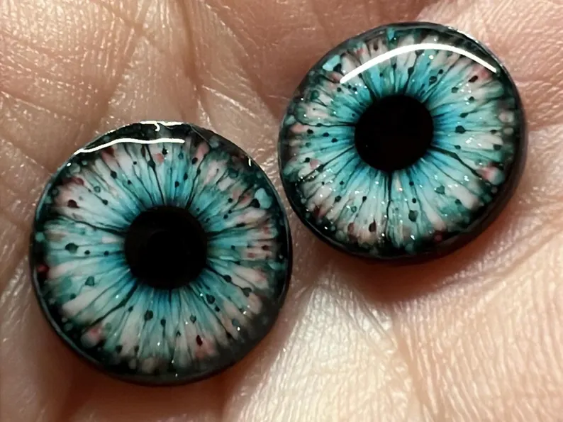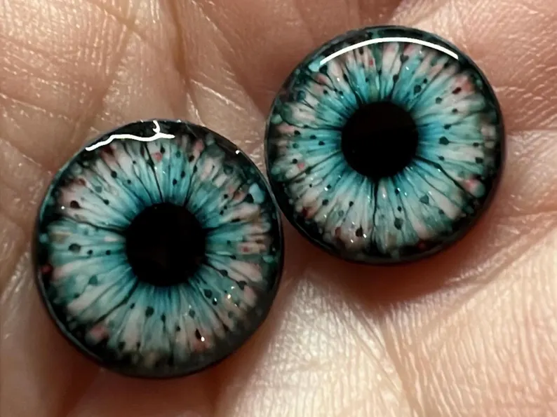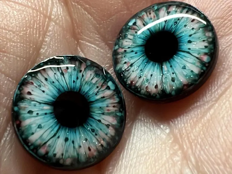 A crisp watercolor style aqua design with a cool, luminous glow and just the right hit of sparkle. Layered with inky detail and soft rosy flecks, these eye chips have a fresh, glossy depth that feels both dreamy and striking. Perfect for dolls that need a look that’s fantastical, polished, and impossible to ignore.
