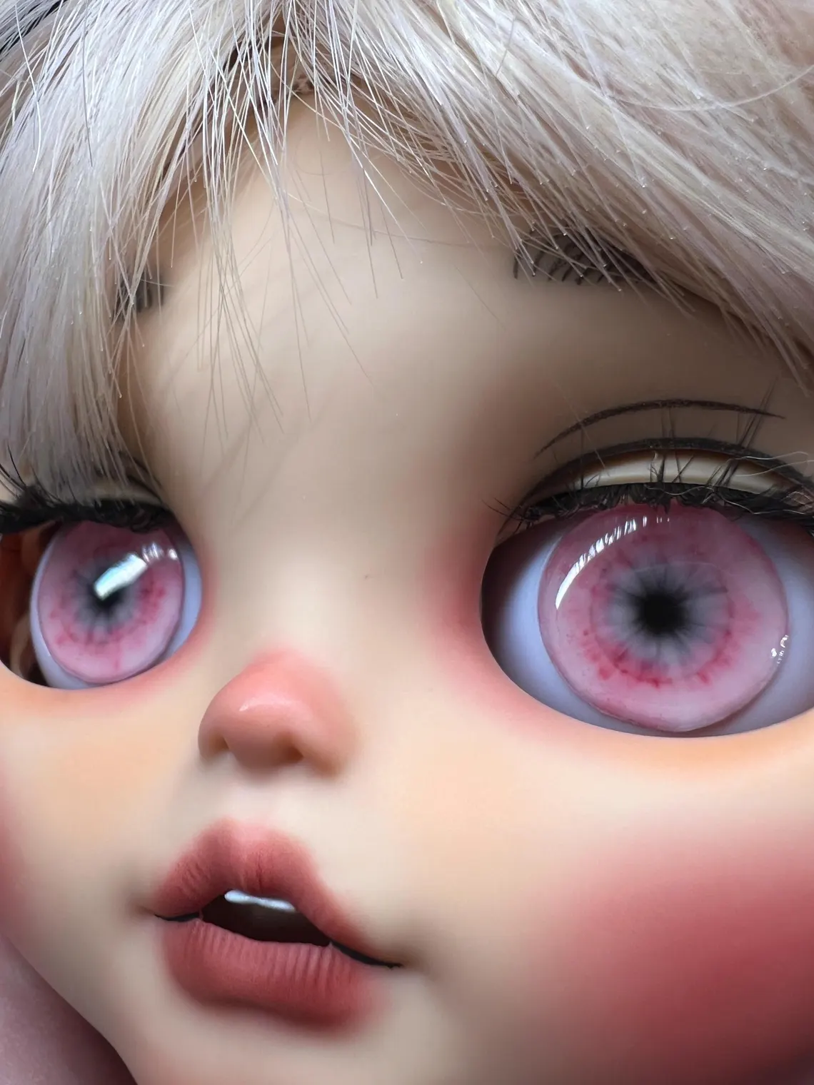 Mystic Pink is soft, strange, and ridiculously pretty. They are the manifestation of several months of intense focus on creating a design that was truly unique and original. These exclusive eye chips blend a dreamy blush pink with smoky gray detail for a look that feels delicate at first glance, but far from ordinary. Sweet without going sugary, they have that quiet, haunted beauty that makes a doll feel instantly more captivating. Perfect for ethereal customs, ghostly pastel looks, or any doll that needs a little pink with a pulse.